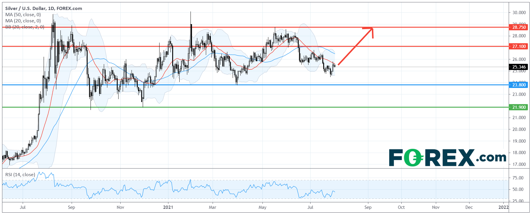 看漲的投資者可將每盎司23.80美元視為主要支撐,上行目標在27.10美元及28.75美元。