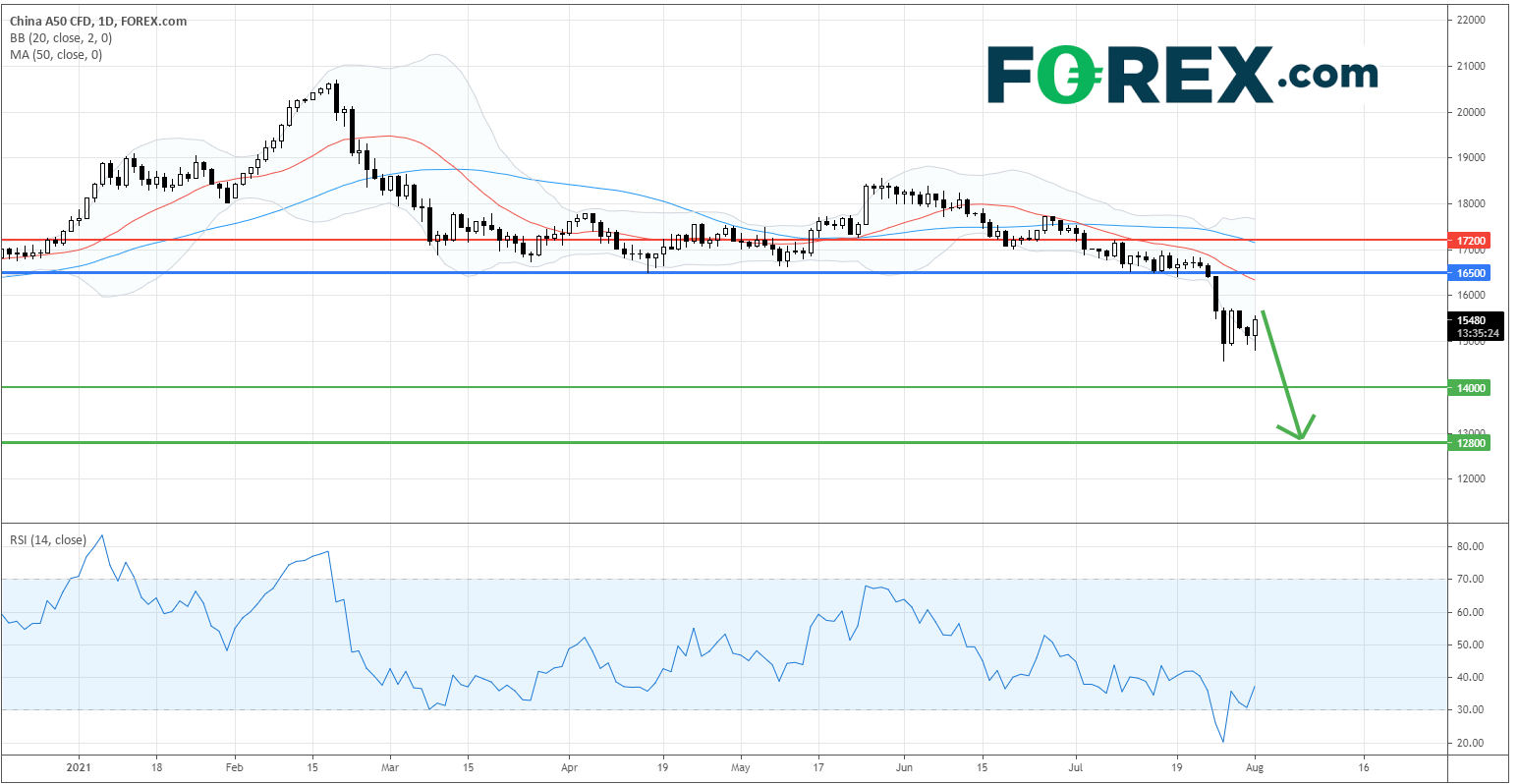 上周 中国A50指数CFD 因市场担忧中国政府会加强监管,而导致市场出现恐慌性抛售,指数最多下泻约11%。随后,中证监与国际投资银行高层会面,并表示对教育业的监管是针对性,并不会伤害其他行业。
