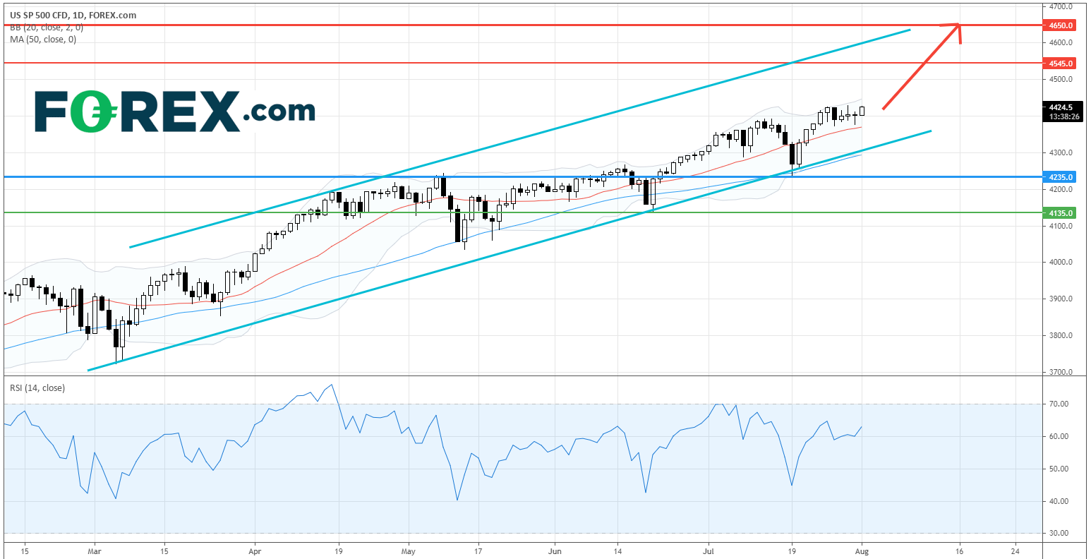 技术配置表示看涨走势不变,上行目标则在4,545点和4,650点。看涨投资者可将主要支持 (止损) 位设在4,235点。