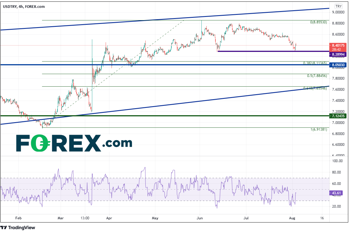 价格随后回落至6月低点构成的水平支撑位8.2900附近,下个支撑位在2月低点到6月高点行情的38.2%回档位,即8.1136附近,接着是水平支撑位8.0503。阻力位在今天高点8.4447,接着是7月16日低点8.4942和历史高点8.8553。