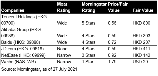 目前,晨星(Morningstar)仍给予腾讯800港元的目标价。鉴于政府对平台经济的支持和该行业的战略重要性,晨星没有改变对中国互联网公司的公允价值估计,因为基本面完好无损,在现阶段不太可能出现严重的打击和重大的公允价值破坏。只是在监管风险消退之前,投资者可能仍会持观望态度。(报告在附件中——Regulatory Concerns Over China Internet Stocks_20210726)