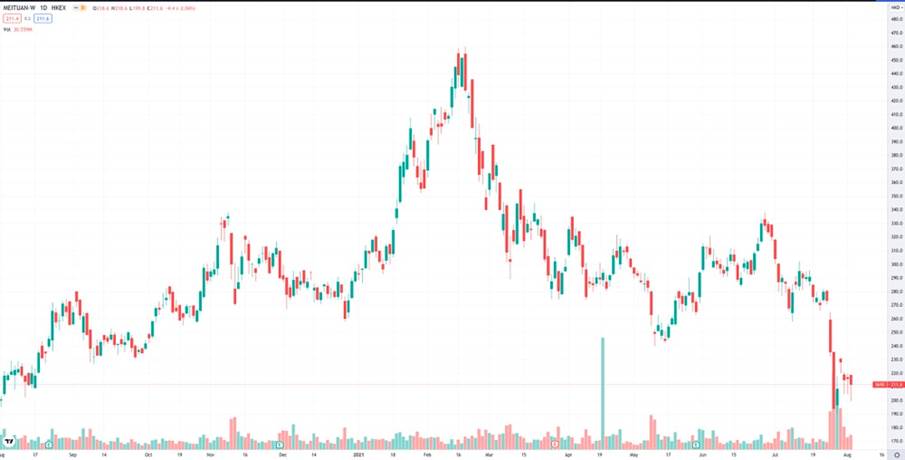 美团股价走势。来源:Tradingview,截至2021年8月3日收盘。