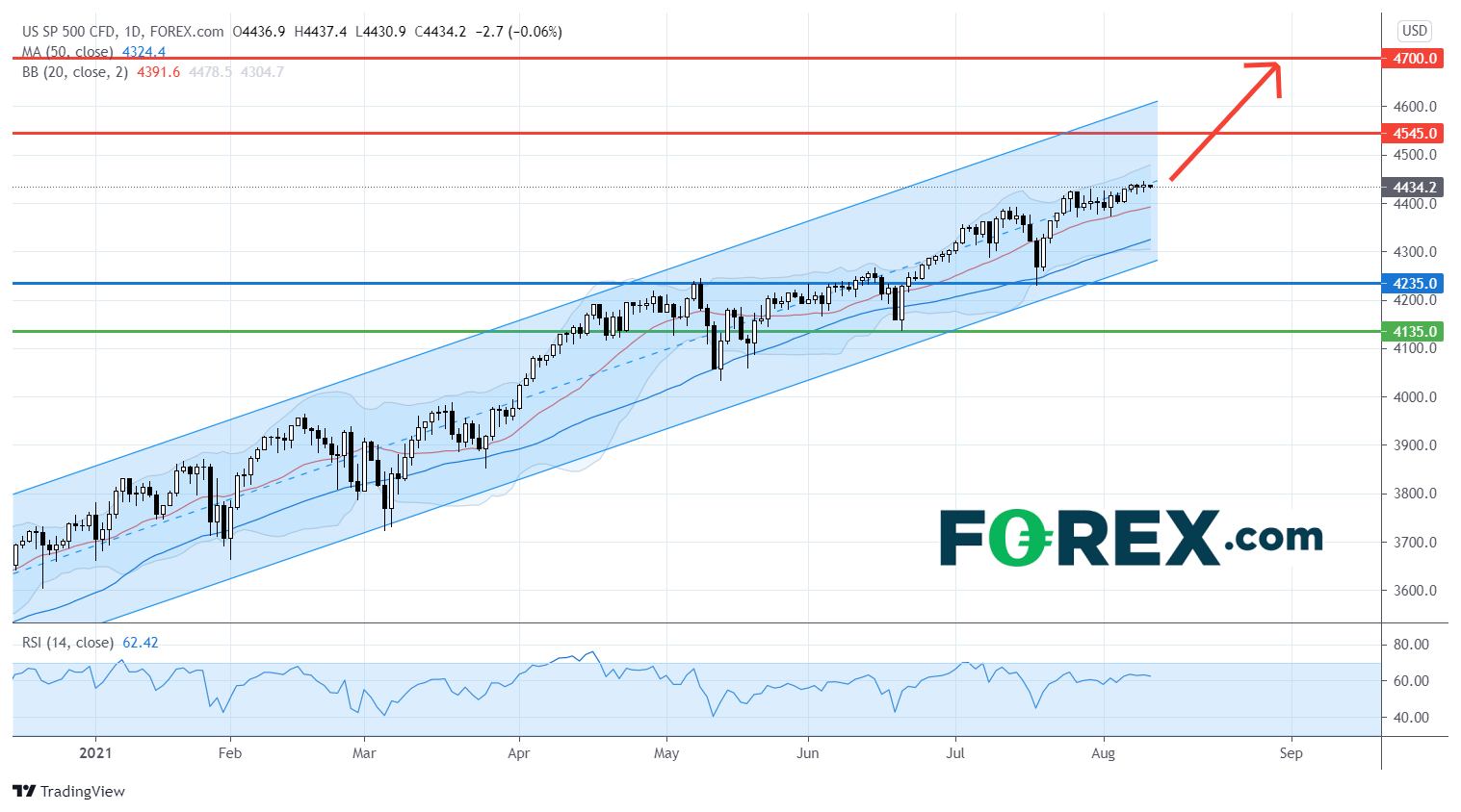 若看涨的技术格局不变,美国标准普尔500指数CFD将向上行目标4,545点和4,700点进发。