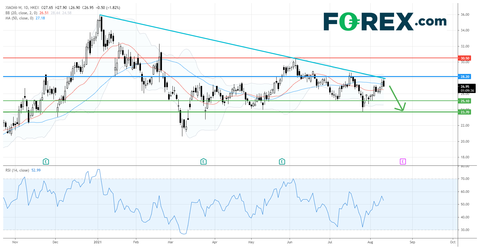 小米集团 (1810.HK) : 留意主要阻力位28.20港元