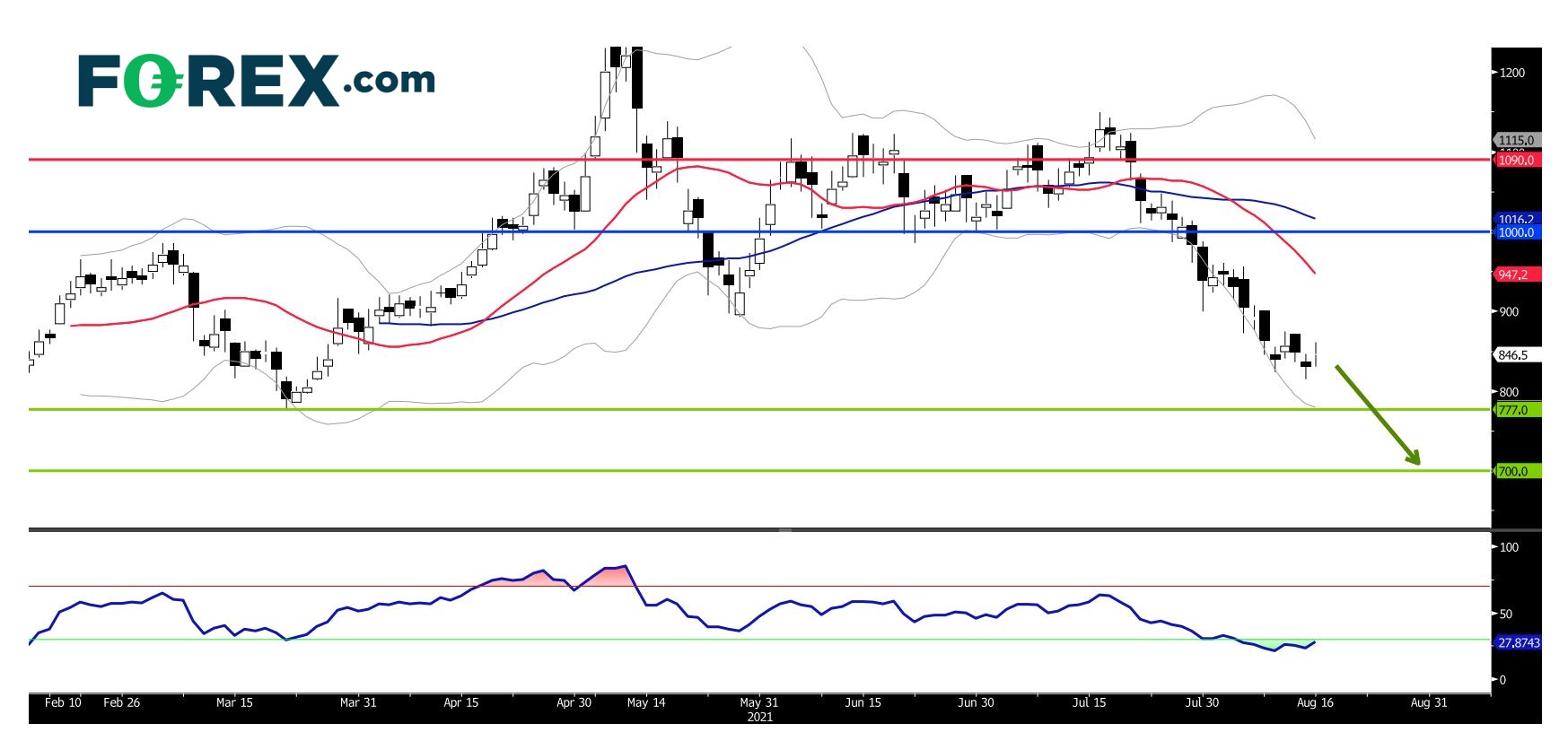 看跌的主要阻力 (止损) 位在1,000元人民币。
