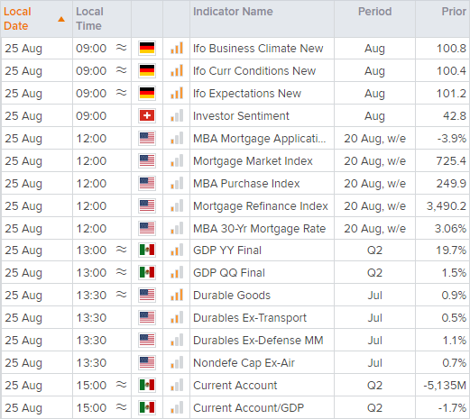 美元指数(DXY)上涨0.13%,重回0.9300上方,我们预计在杰克逊霍尔会议前,除非今天耐用品数据出现重大意外,市场波动性或受限。