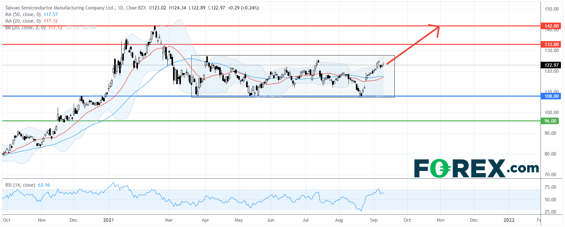 台积电 TSMC (TSM.US):看涨盘整,首个目标133美元