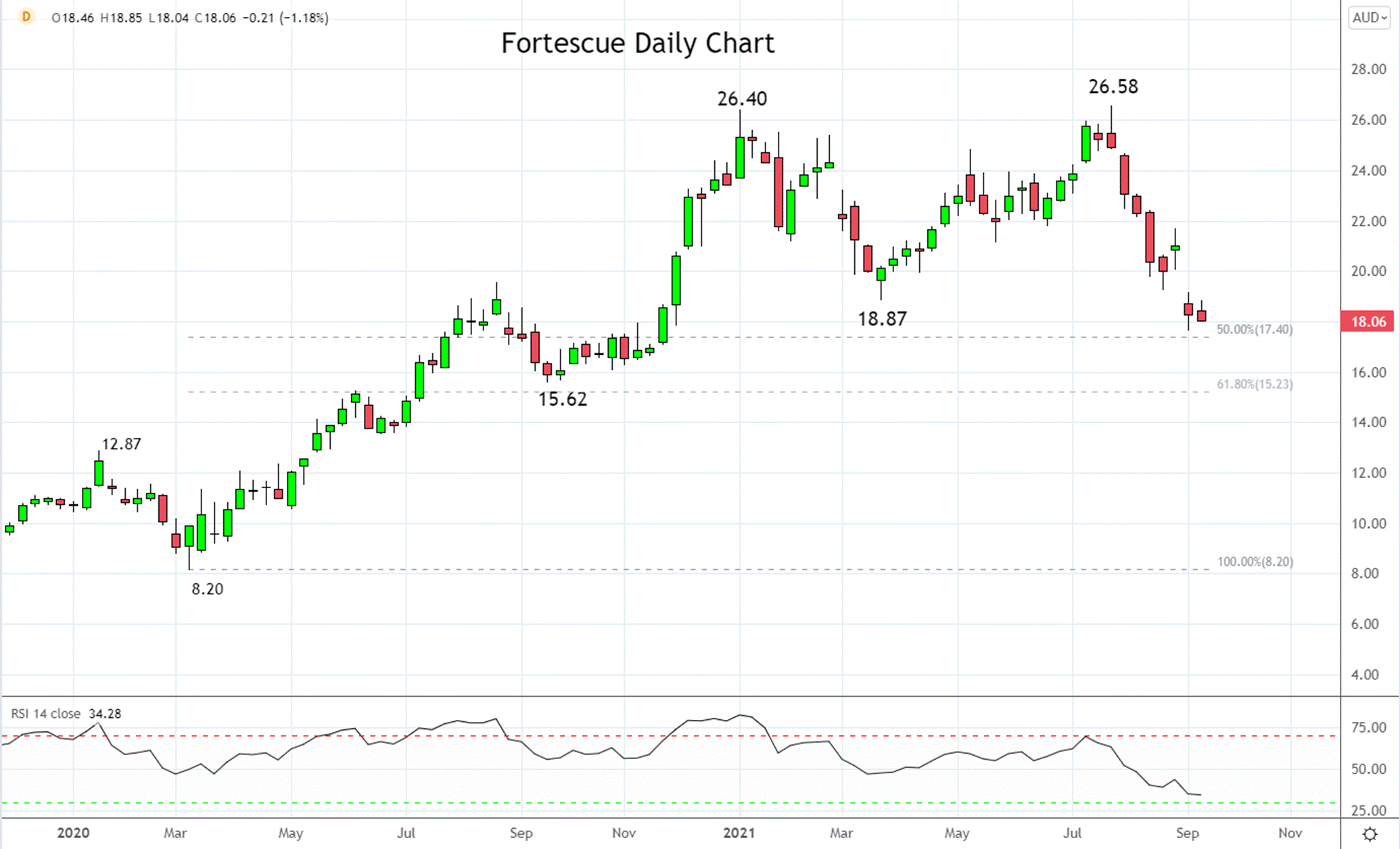 Fortescue Metal Group是铁矿石开采巨头,股价在过去两个月跟随铁矿石价格的急跌势头跌逾30%。
