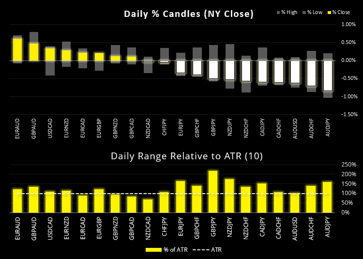 对于澳洲联储主席Lowe昨天的讲话,交易者似乎有点失望。他说,考虑到三季度成长预计萎缩、薪资增长乏力、澳大利亚通胀没有跟上全球趋势,不理解市场对2022年底/2023年年初加息的预期。澳元/美元昨天形成看跌吞噬K线,坚定地收在20天指数移动均线和38.2%回档位下方。相对强硬的新西兰联储,澳洲联储的立场依然温和,澳元/纽元昨天因此跌至2020年4月以来最低点1.30。