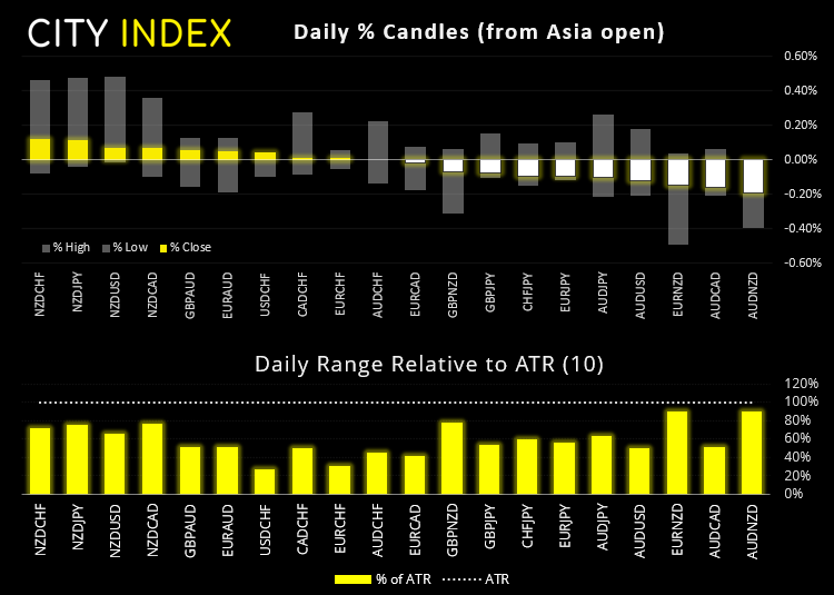 新西兰企业PMI定于AEST时间08:30发布,据预测小幅下跌至61.8,考虑到奥克兰仍处于4级封锁且新西兰其余地区仍处于2级封锁(下周一将对其进行重新评估),前述预测值仍处于相当高的水平。纽元仍是9月和过去一个月的最强主要货币,如果新西兰进一步放松封锁管控,纽元有望继续上涨。英国零售销售定于英国夏令时16:00揭晓,而美国时段的主要事件是午夜的密歇根大学消费者信心指数。