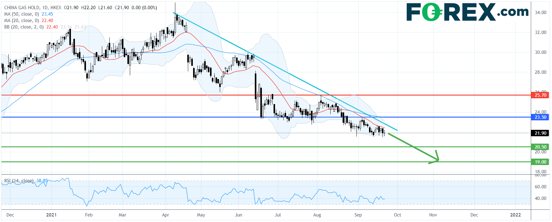 中国燃气 (384.HK):走势严峻,料先跌回20.50港元