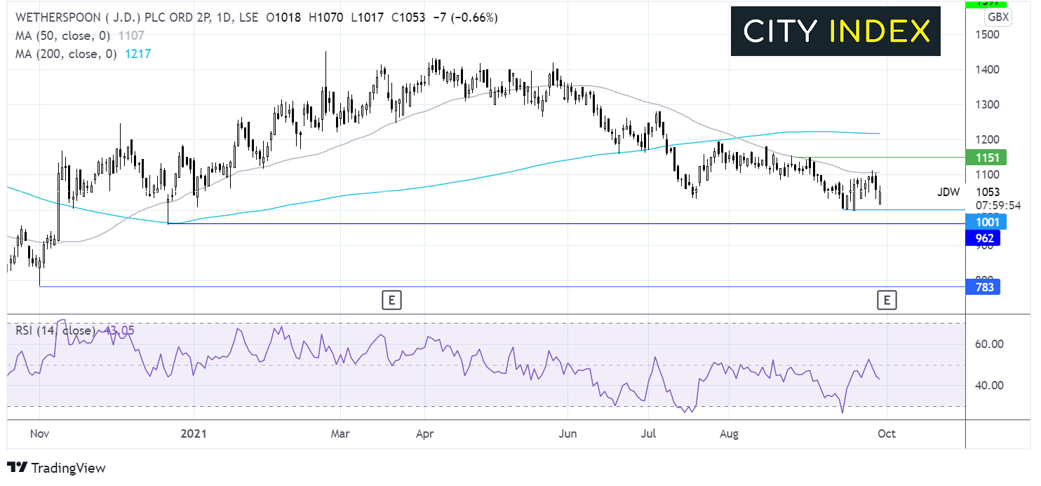 交易员可能寻求财报发布后突破交易。卖盘将等待跌破1000便士,若落实,或为探向2020年12月低点960便士,然后2020年11月低点780便士打开大门。