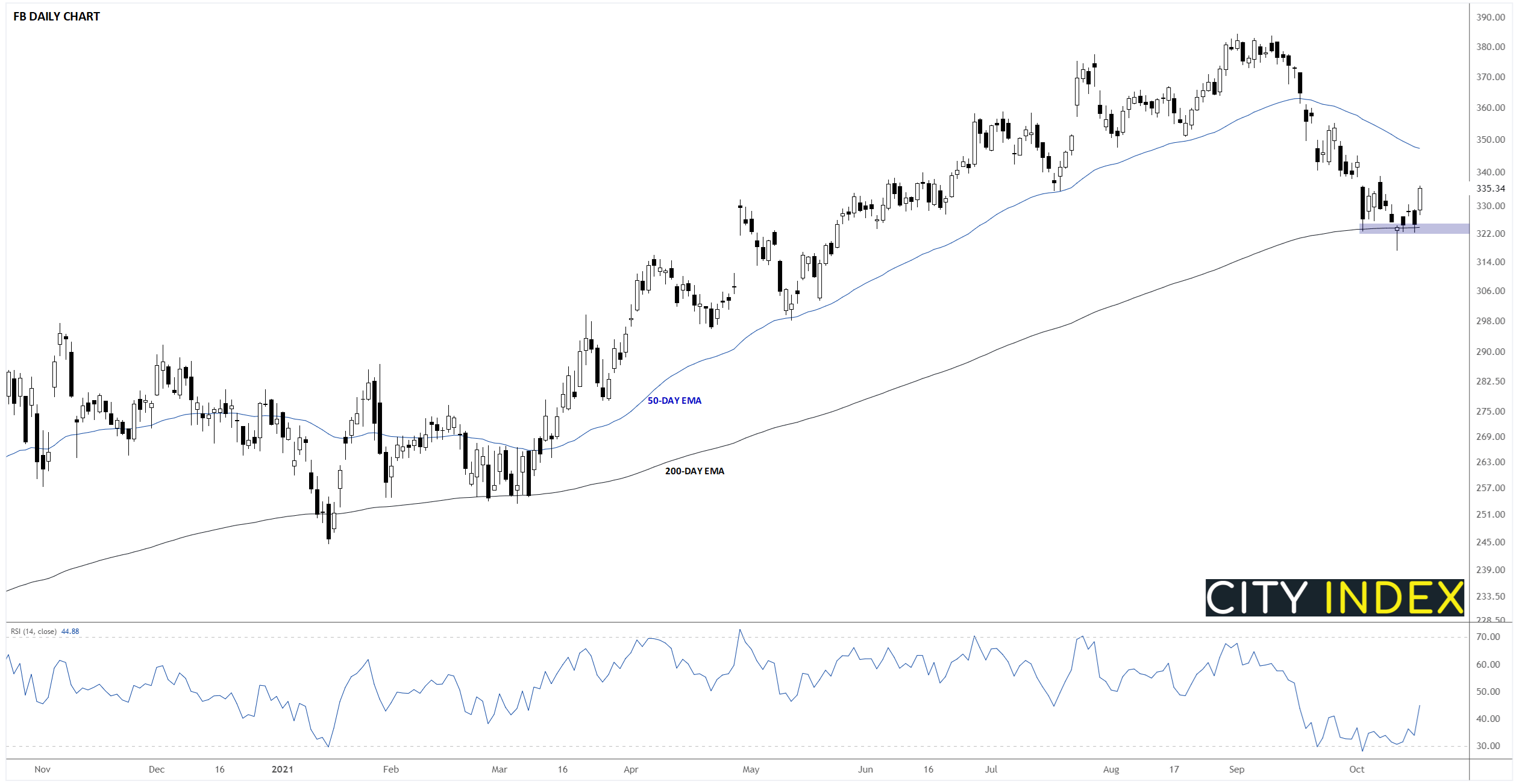 不同于FAAMG组大部分竞争对手,脸书网的股价已自其9月初创下的历史高点明显回撤,此文发稿时的跌幅在15%。不过,股价在其上翘的200天指数移动均线处有所企稳,该位可能是后市需要重点关注的核心价位。如果下破该区域(目前落在320附近),可能在令人失望的财报助力下扩大回调力度。