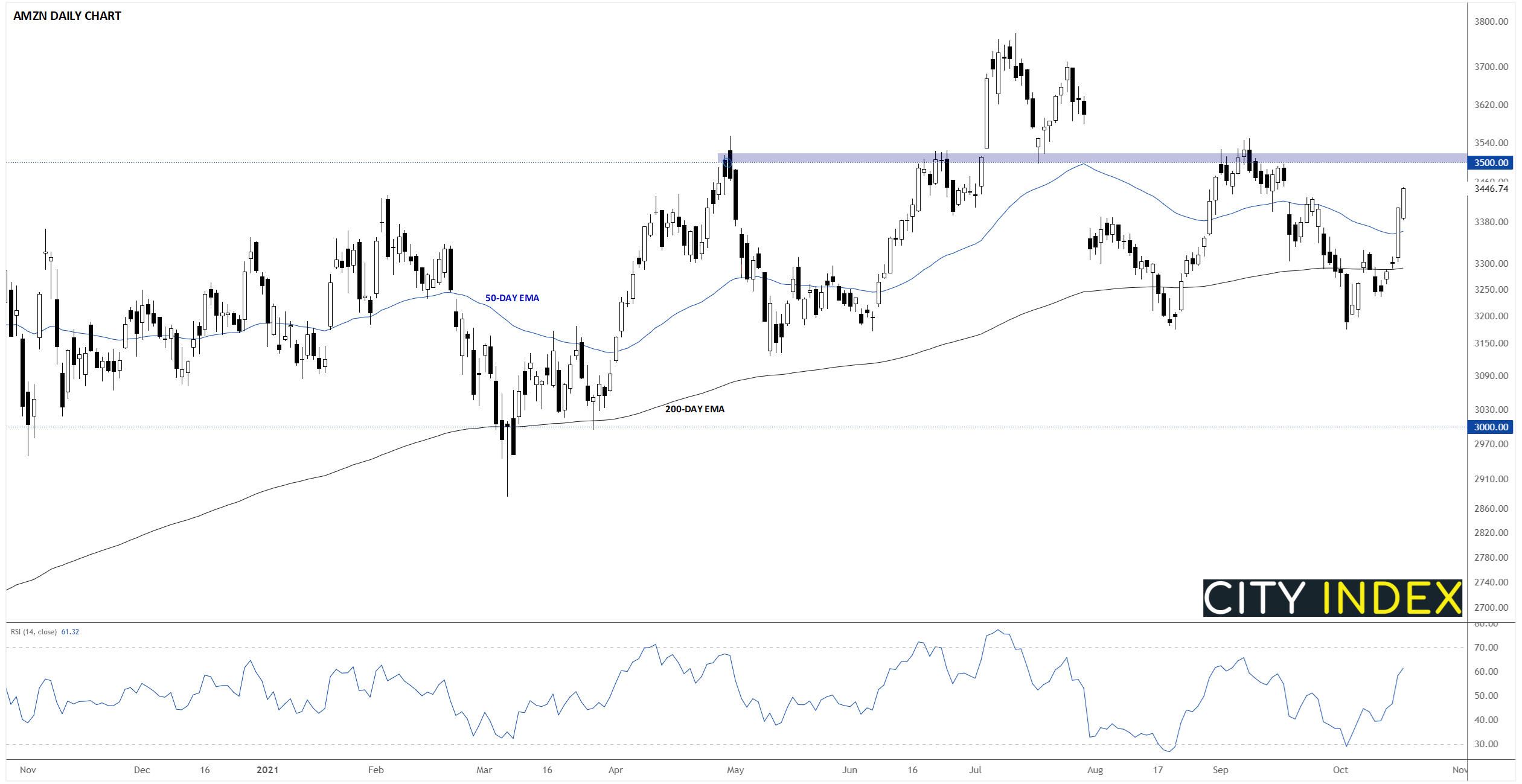 谷歌的母公司Alphabet的股价似乎从未特别受到全球经济状况起伏的干扰,所以处于清晰的长期上涨趋势中也不奇怪。该公司股价在整个9月下跌9%,之后收复其50天指数移动均线。展望后市,交易者将重点关注2920附近的前历史收盘价。如果得到强劲财报的助力站于其上,有望扫清障碍,将上涨势头延续至假期季。