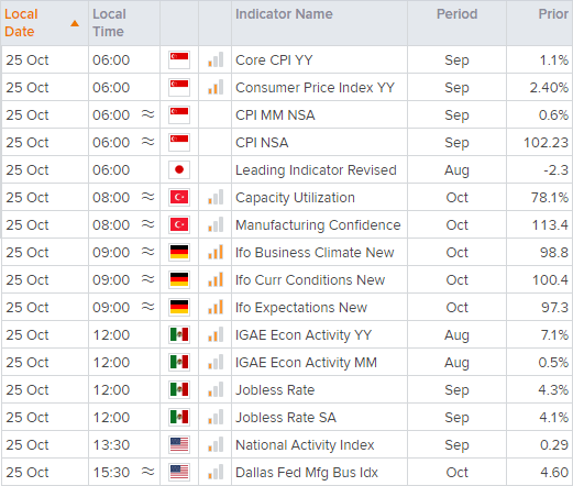 德国IFO商业报告定于英国夏令时09:00发布,经济是否继续受“瓶颈衰退”的拖累为此次数据关注重点。商业景气指标4个月前达到顶峰,目前仍低于100(一定条件下),指向经济萎缩。周五公布的PMI预览值也表现不佳,因此今天数据也可能会进一步疲弱。不过,若意外向好,欧元反应将更为强烈。除IFO外,几乎没有具市场影响力的数据待发,墨西哥就业数据将于今日12:00出炉,而美国商业信心指数将于今日13:30和15:30发布。