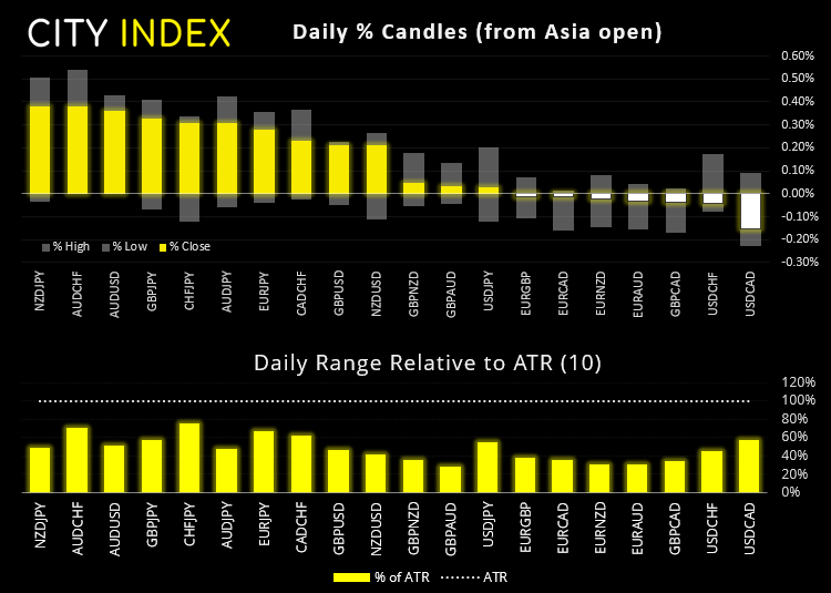 DAX指数仍于8月高点和10月低点间中点附近横盘。三浪推高始于200天EMA均线的看涨锤子线,因此,若出现推高,应不会面临太多回调(因为第三浪往往势能最强)。最终,我们在15300上方继续看涨,若能升穿上周高点,表明趋势继续。