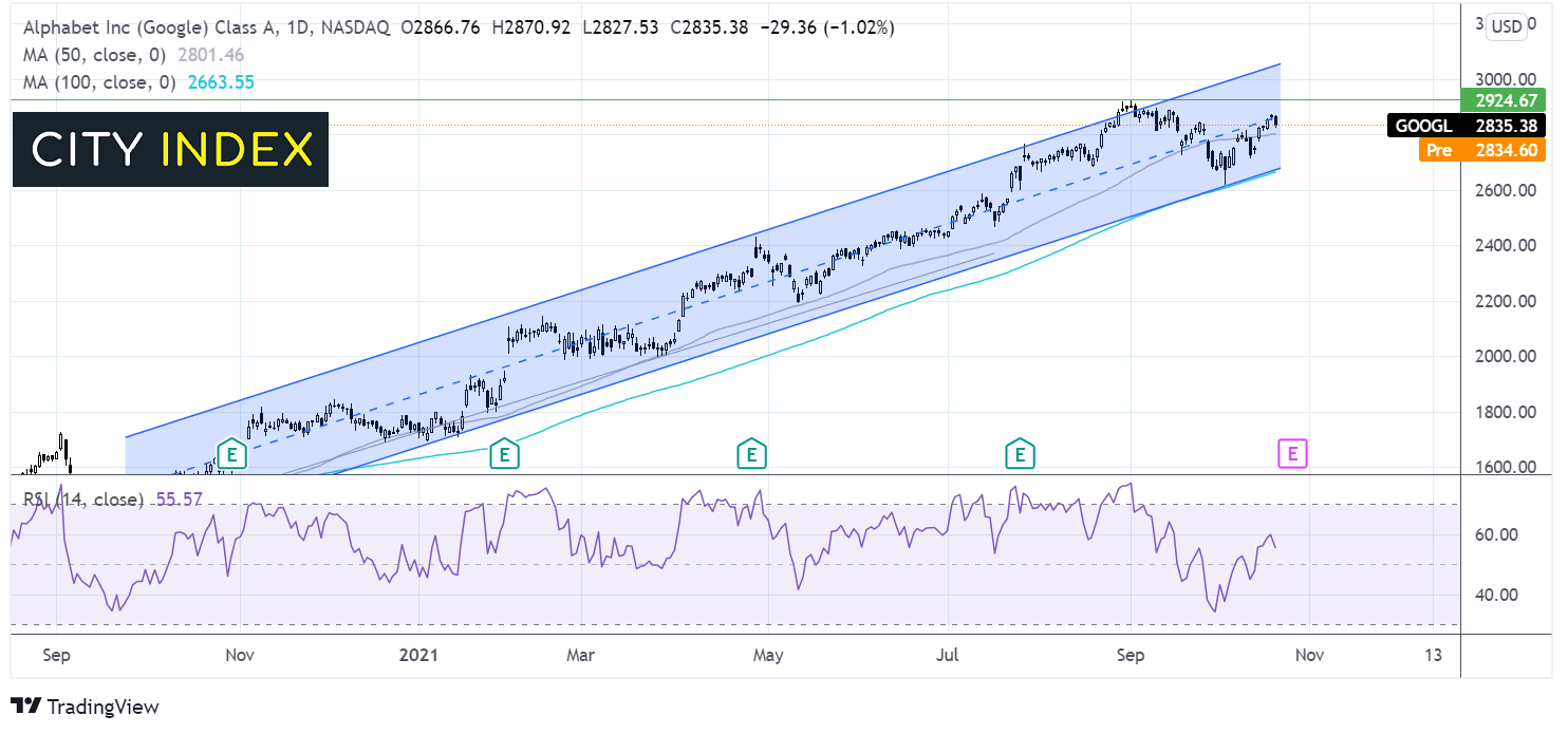 Alphabet自去年9月以来一直交投于上行通道之内。该股于9月初创下2920美元历史新高,之后有所回落。