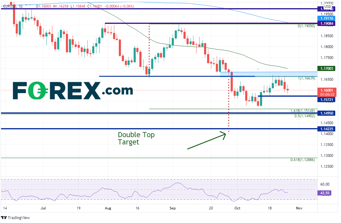 欧元/美元的交投和美元指数相背。9月3日测试了前高点1.1908之后,该货币对不断走弱,于9月29日击穿水平支撑位1.1664,形成了双顶形态。双顶形态突破后的目标在突破点加上形态高度,即1.1410附近。但价格在到达8月20日低点到9月3日高点行情的161.8%回档位,即1.1525后止跌。9月29日以来在1.1525-1.1669区间交投(期间反弹至双顶形态的颈线)。强阻力在1.1669-1.1684区间,然后是略高于该位的200天均线1.1700。水平支撑位在1.1572,接着是由上文提到的161.8%扩展位、水平支撑位和2020年3月低点到2021年1月6日高点行情的50%回档位构成的支撑带1.1490-1.1515。