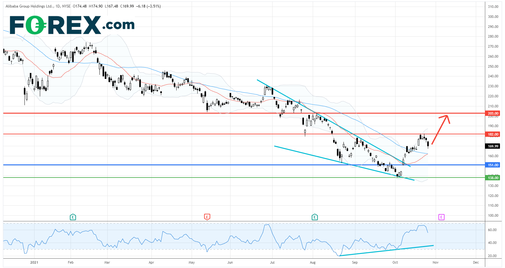 阿里巴巴 (BABA.US) : 上破182美元,可见203美元