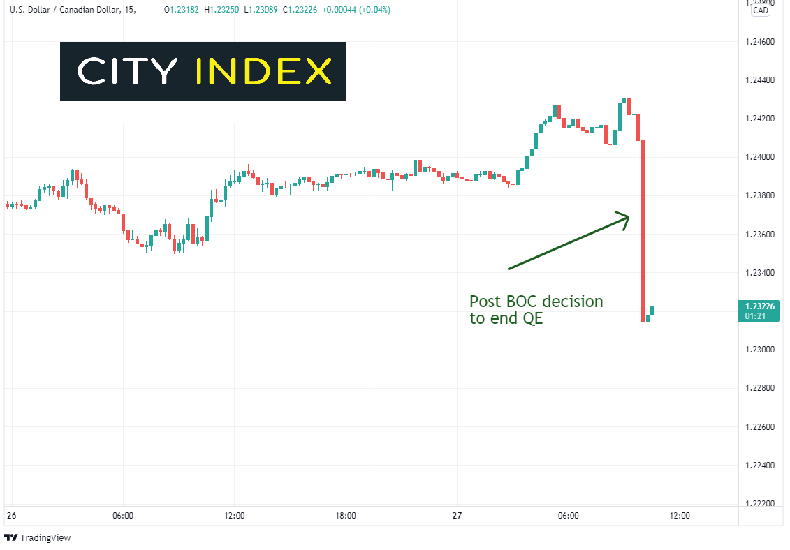 随着加拿大央行结束量宽计划并将利率指引提前至2022年中期,美元/加元和欧元/加元大跌。然而,鉴于下周美联储FOMC会议和明天欧洲央行会议日程,及若油价有任何波动(加元和油价高度相关),美元/加元和欧元/加元未来几周或行情凶猛!