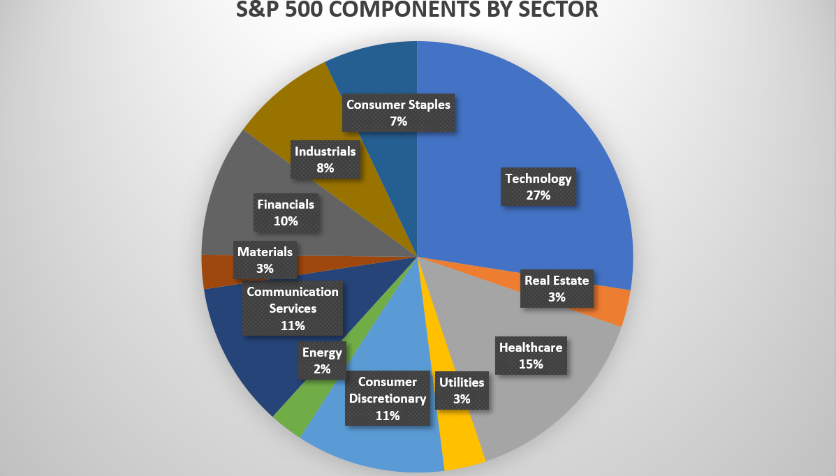 该指数权重最大的成分股包括科技巨头苹果(Apple)、微软(Microsoft) 、Facebook和Alphabet,及全球电商巨擎亚马逊(Amazon)以及沃伦·巴菲特的投资工具Berkshire Hathaway。指数还包括制药公司强生(Johnson & Johnson)和投资银行摩根大通(JPMorgan Chase & Co.)。最近加入该指数的是2020年12月被纳入的电动汽车公司特斯拉(Tesla)。