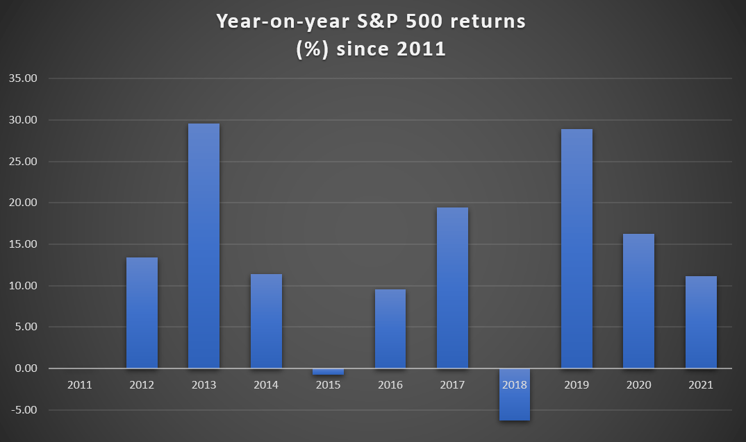 下图为2011-2020年的年回报率。请谨记,过往回报并不能保证未来的表现(数据来源:Macrotrends)。