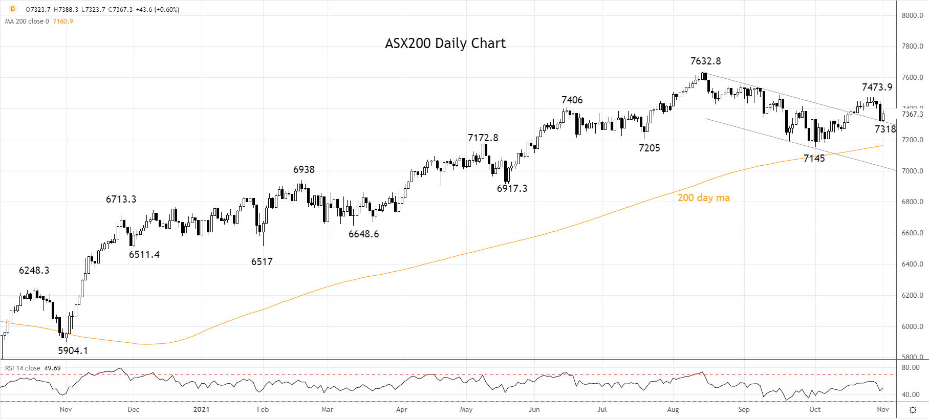 该指数守住上周标题为《ASX200指数在澳大利亚三季度CPI发布之前缓慢走高》的文章中指出的7340/20支撑位,这点鼓舞多头。