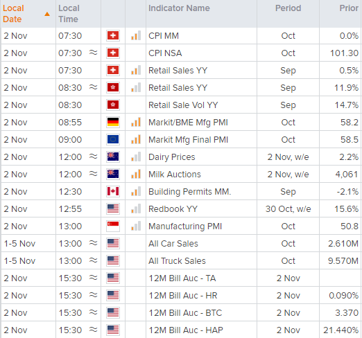 数家央行会议召开在即,股市隔夜涨跌互现。科技股追随美股走高,韩国KOSPI 200指数表现最佳,有望录得4周以来最大涨幅。澳洲联储开始收紧政策,较预期向加息更快迈进一步,ASX 200指数下跌约0.5%左右。中国股市时段表现最弱,富时中国A50指数下跌1.3%,CSI300指数下跌0.7%左右。