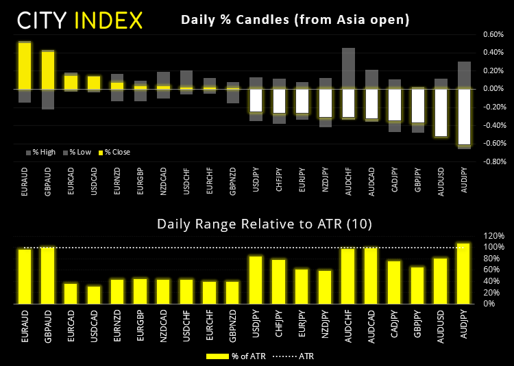 富时指数在周一构筑看涨锤子线后,攻入疫情后新高。我们在昨天的低点上方保持看涨。股票方面,渣打银行(STAN)税前利润较上年翻了一番。