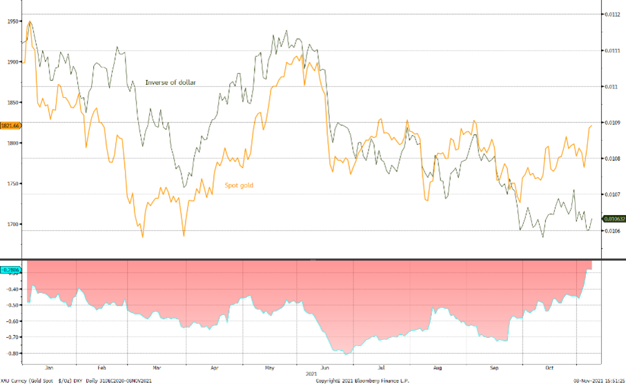 黄金和倒置美元的相关性正在减弱