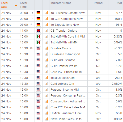 美国今天还将发布GDP二次估值。初值显示整体增长低于预期,仅增长2%,报于封锁以来最低增速。唯一让人欣慰的是,GDP是一种向后看的指标,所以除非今天数据大幅上修,否则应该不会引发市场大动。但隐藏在数字背后的是通胀放缓迹象,第三季度个人消费支出和核心个人消费支出价格下降。如果这些数据仍低于第二季度,那么美联储鸽派人士可能会迅速抓住这点,用以佐证他们的“暂时性”通胀观点。