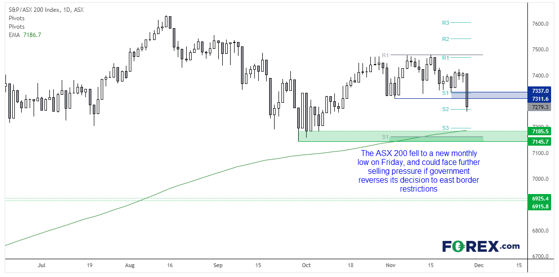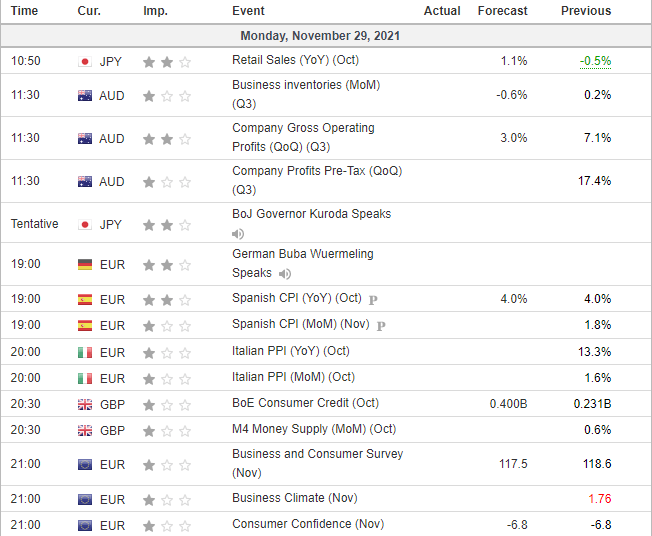 澳大利亚政府昨天宣布,禁止包括南非在内的九个非洲国家的乘客入境。在过去十四天内到过其中任何一个国家的澳大利亚人都将被监督、被送去检疫。只不过严格来说澳大利亚边境本来就没有开放,因为按计划12月1日起才放宽对技术移民和国际学生的入境规则。据我们所知,该计划仍将在周三照常实施,但各州有权决定开放的对象以及是否开放。因此,与其它国家一样,在可预见的未来,市场对澳大利亚政府举措的预测将成为核心驱动力,影响力可能超过经济日历事件。