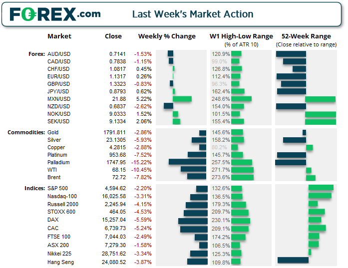 如果想要知道上周五市场究竟有多恐慌,最好的指标莫过于油价。西得州原油跌逾13%,跌幅创下2020年4月跌破0美元以来之最。交易者当然关切各国政府对新冠病毒新变异病毒的应对措施及其对原油需求的影响。油价现在两个月中首度跌破70,该位可能转变为阻力位(从期货交易活动判断,70.10和70.75也是有力的阻力位)。支撑位在上周五低点67.39。Thomson Reuters大宗商品指数下跌4.8%(剔除能源的指标下跌1.9%)。