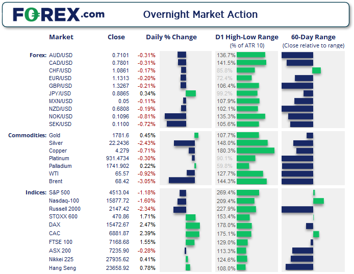 新冠病例数增加引发旅行限制与封锁管控的担忧,再结合需求关切,令大宗商品普遍走弱。Thomson Reuters CRB指数跌至218的6周低点,现在的水平相较高点下跌9.5%左右。