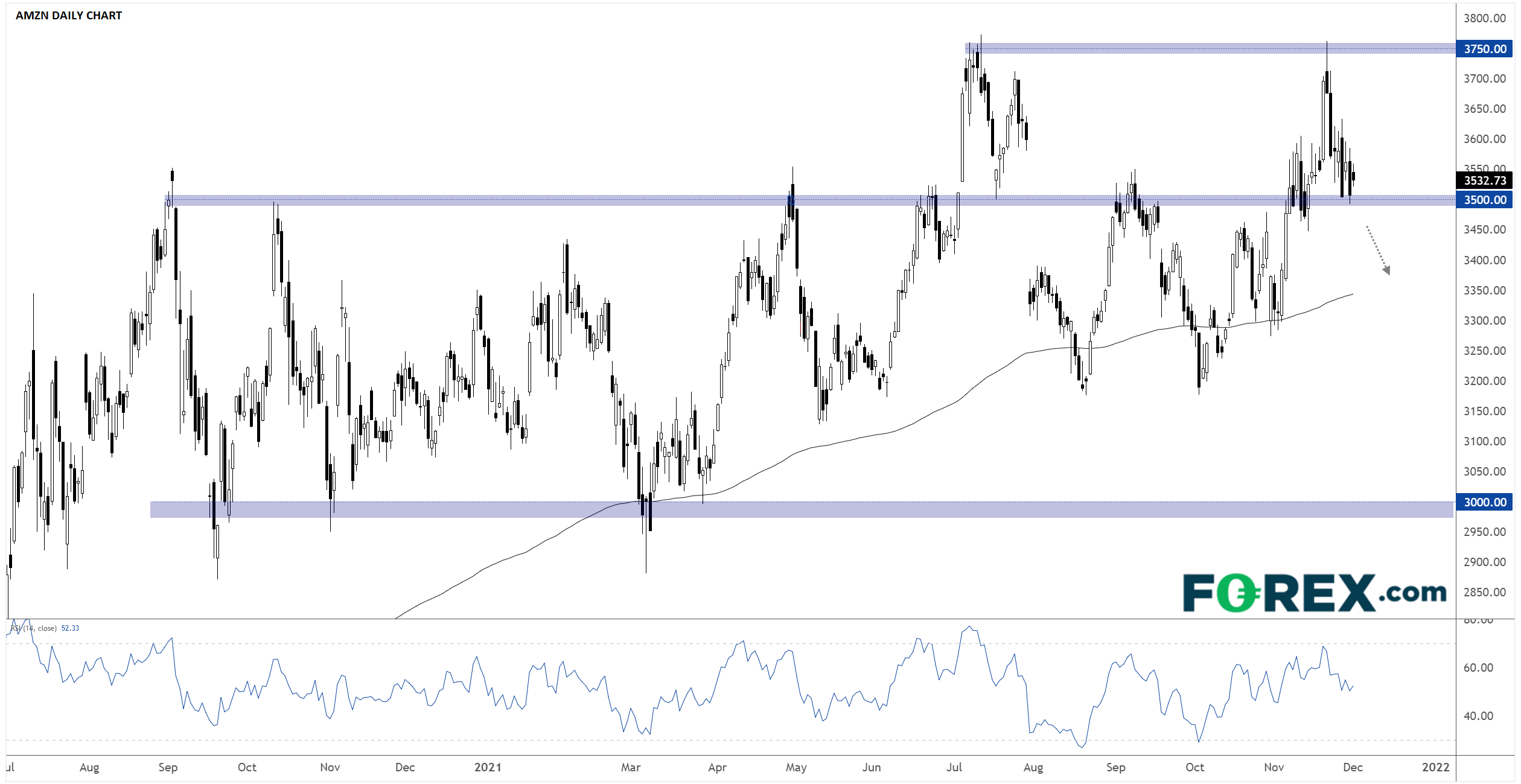 展望后市,亚马逊股价需要关注的关键价位在3500附近。该核心区域在今年上半年一直构成阻力,到了7月中旬转变为支撑位,9月又变身阻力位,现在似乎正为这家“万能商店”的股价提供不错的支撑。如果有效击破3500,股价可能快速下探200天指数移动均线所在的3350一线。