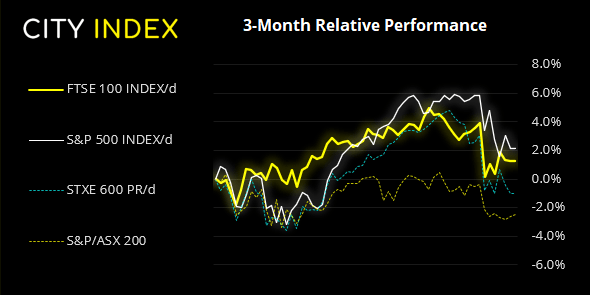 上周五,富时100指数当天收于月枢纽下方一条看跌pinbar,50天均线充当阻力位。若失守周五低点则可能已构筑临时顶部,后市或再度探向7000。有趣的是,期货市场指向开盘上行,但我们希望看到日收盘于7200之上才能巩固看涨信心。在此之前,我们更倾向于在周五区间小幅反弹后推低或等待价格下破低点。