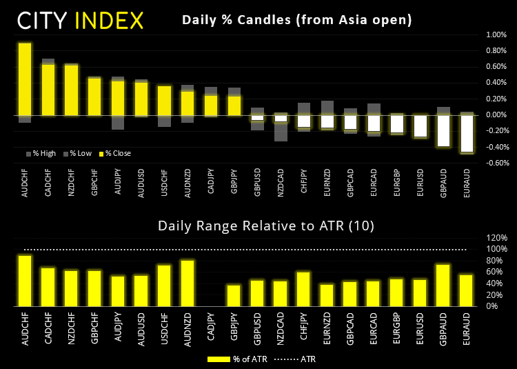 美元/瑞郎正试图在日线图构筑看涨吞没K线并重回 200天均线之上。这可能是明天需重点关注的货币对,若日线图收于0.9222之上,将同时拿下月枢纽点并发出潜在波段低点成形警告。