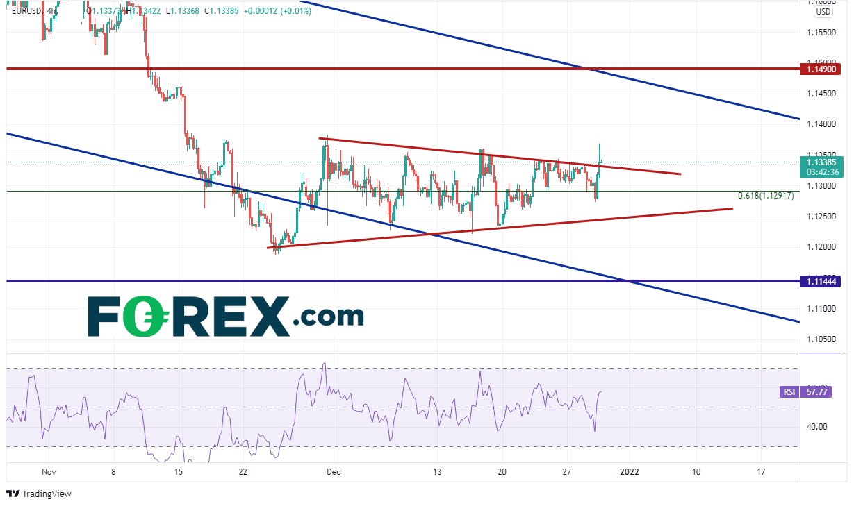 进入伦敦时段定盘,美元指数遭到抛售。很多大型交易机构与对冲基金已离场准备进行年尾购物,但市场上还有一些交易机构仍在交易。而一些养老基金也需要为年度资产负债表日的到来做准备,在此时缺少流动性的市场环境中可以左右价格。这些“留守者”在12月结束和2021年结束还有两天的今天进行抛售的主要原因是,很多基金需要为结算日期的到来做好准备。也就是说,周五(12月31日)是T+2结算日期,那么周三(12月29日)就是最后的交易日。在美元遭到抛售的同时,欧元/美元和英镑/美元双双上涨。两者后市怎么走?