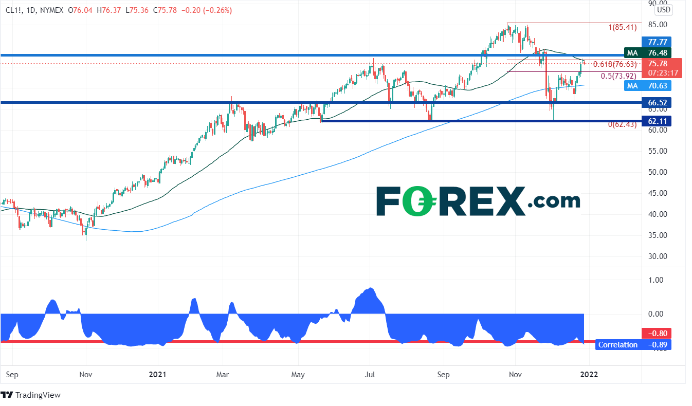 下图西得州原油图表的底部是原油期货合约和美元/挪威克朗之间的相关系数,目前日图报在-0.89,被视为强负相关。如果希望分散、丰富原油持仓,买进美元/挪威克朗即可。