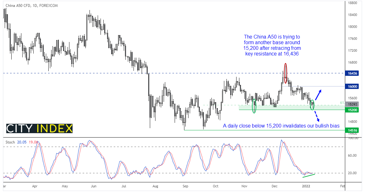 富时中国A50指数于15200上方再次筑底