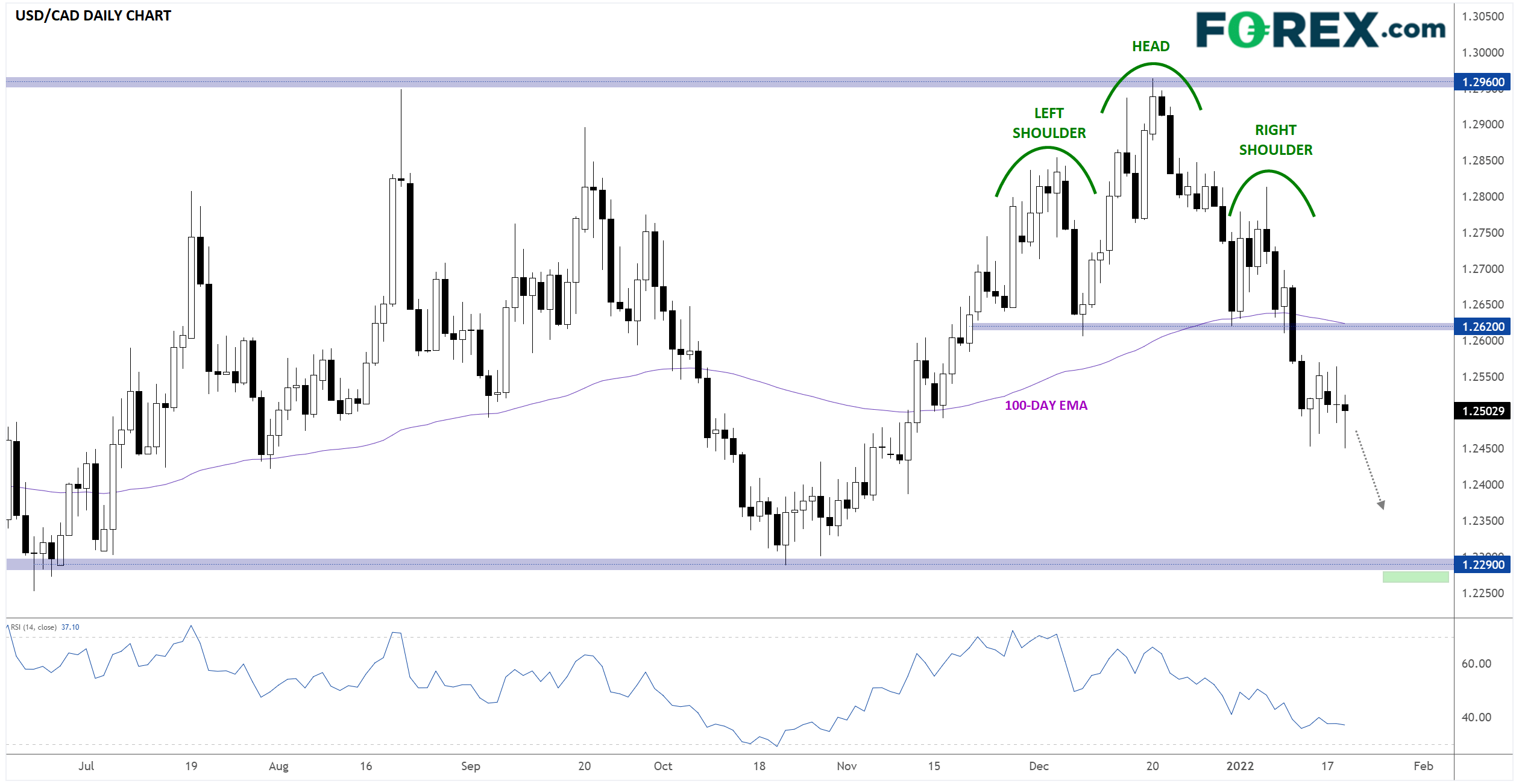 该北美货币对技术面下破头肩顶形态的颈线1.2620,确认了此形态成立,也符合我的同事Joe Perry上周做出的预期。按该形态高度(即340点子)衡量的下跌目标在6月-10月前支撑1.2290区域: