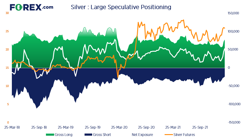 债券价格与其收益率反向波动,即价格下跌时收益率上涨。所以,我们有必要指出,大型投机者对10年期美债的空头持仓为2020年2月新冠疫情席卷西方国家以来的最高点,这实际上可视为看涨收益率。债券价格下跌的趋势丝毫没有马上触底的信号。