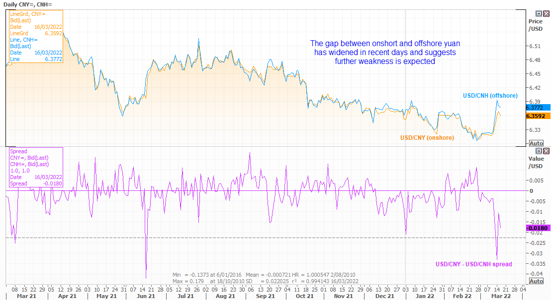 利差表明美元/离岸人民币有上涨潜力