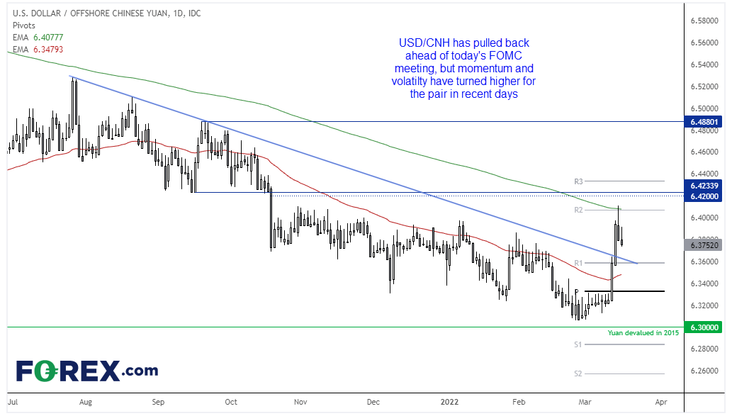 美元/离岸人民币回撤,等待FOMC会议