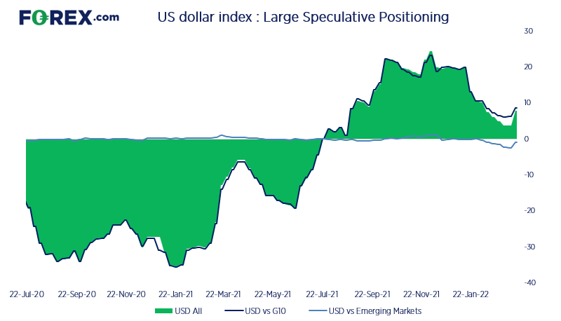 - 美元指数净多头持仓降至24周最低点。