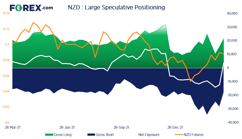 上周澳元净空头锐减,幅度为33400张,是2015年3月以来之最。空头合约减少28600张,为2020年3月以来速度最快的空头回补,而多头合约增加4800张。地缘政治与供应关切导致大宗商品价格强力反弹,携手立场强硬的美联储和温和程度减弱的澳洲联储,最终压垮强弩之末的空头,并推动澳元汇率回到74上方。如果澳洲联储进一步表露强硬立场,则我们可以说澳元甚至可能回到80上方。