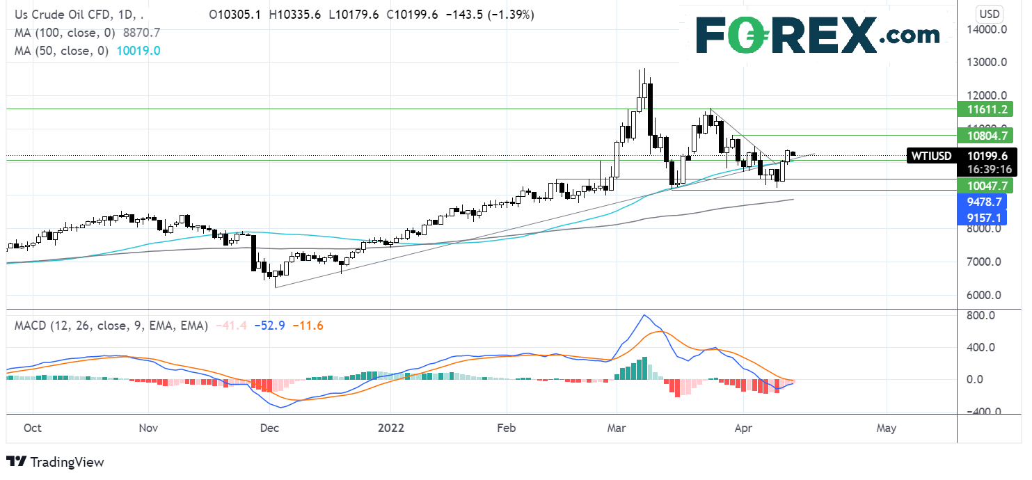 而如果下破50期均线和上升的趋势线以及100心理大关,空头或下探95.00。