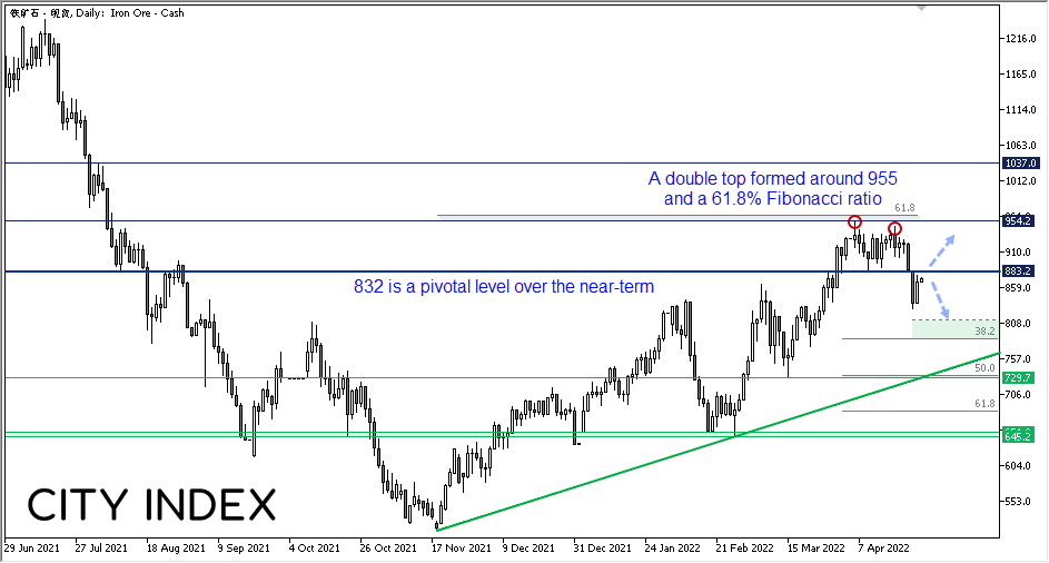 铁矿石价格徘徊于关键阻力位下方,面临“生死”抉择,市场现在需要判断其延续上涨趋势抑或扩大自月初创下10个月高点以来的跌势。