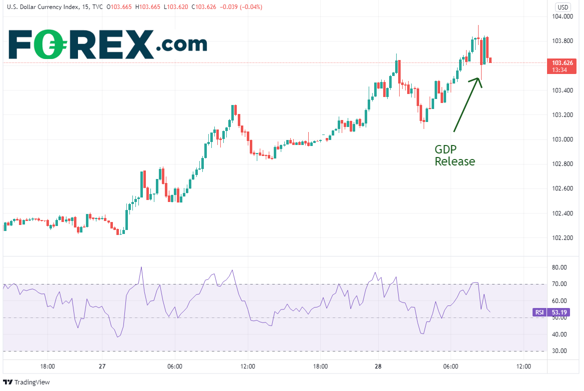 一季度GDP初值弱于预期,但因其回顾性质,对美元的抛物线式行情的影响可能不大。后市请留意核心PCE报告,帮助判断美元指数和欧元/美元接下来的走势。