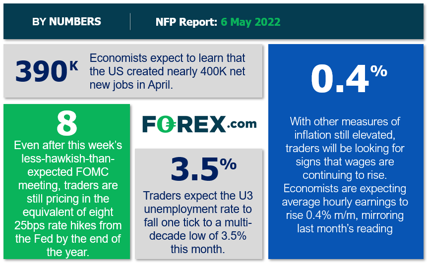 在这样的背景下,未来数月里随着金融条件(即利率)从经济利好变成经济利差,需要关注就业数据将如何演变。值得庆幸的是,经济学家认为这点不会成为影响本月非农就业报告的重大因素。主流观点认为,净新增就业40万左右,平均每小时收入月率上涨0.4%。